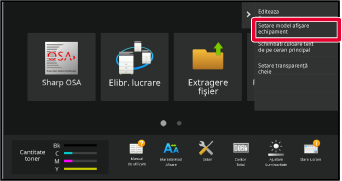 Deschideți panoul de acțiuni din ecranul principal şi atingeți scurt [Setare model afişare echipament].
