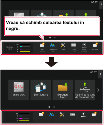 Puteţi schimba culoarea textului din tastele de comenzi rapide, tastele fixe şi ceasul