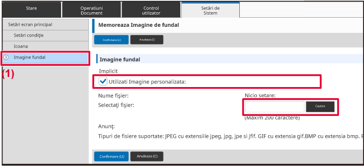 Setaţi căsuţa de verificare [Utilizati Imagine personalizata] la