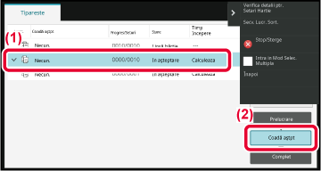 de starea de procesare, atingeţi scurt tastele [Prelucrare], [Coadă aştpt] sau [Complet]