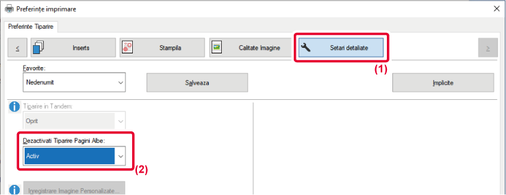 2. Selectaţi [Activ] în [Dezactivati Tiparire Pagini Albe].