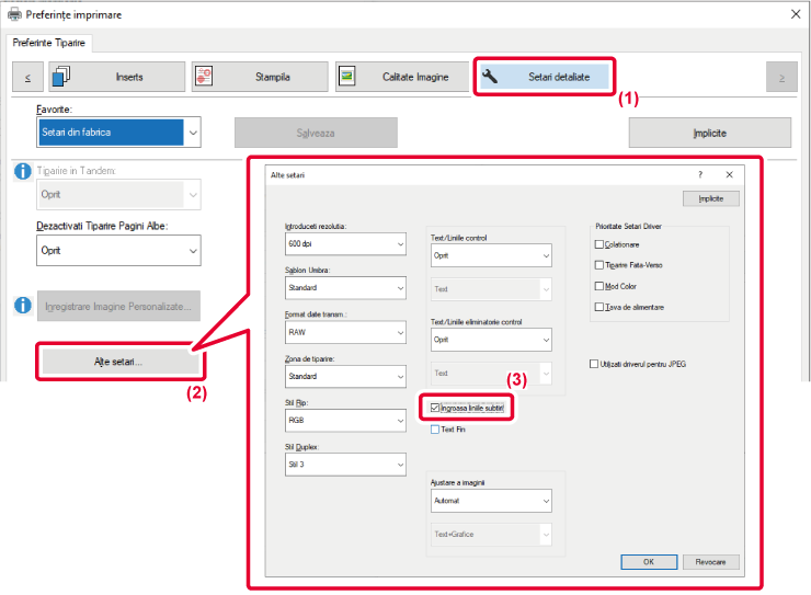 Această funcţie măreşte lăţimea tuturor liniilor atunci când liniile imprimate nu
