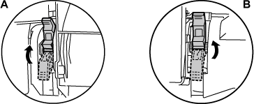 Переместите рычаг сброса давления термозакрепления (два) в положение уменьшения давления, как показано на рисунке.