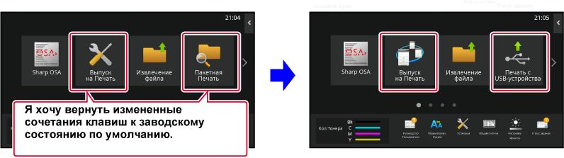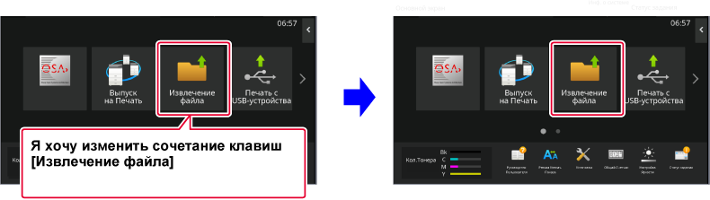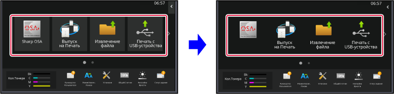 Параметры будут сохранены в аппарате и применены.В данном разделе описано изменение кнопки быстрого вызова на главном экране.
