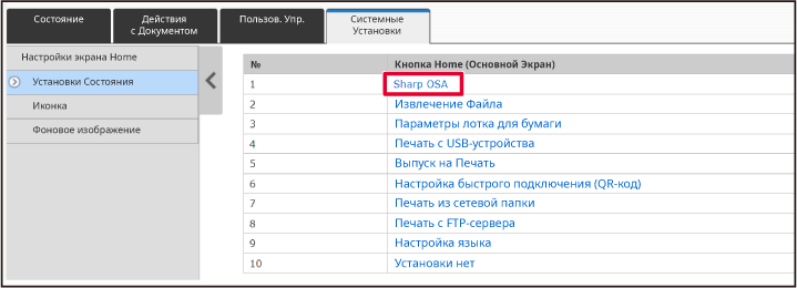 Для некоторых параметров после щелчка по пункту [Настройки экрана Home] может потребоваться ввод пароля пользователя. Если не выполнялась аутентификация пользователя, необходимо ввести пароль администратора.