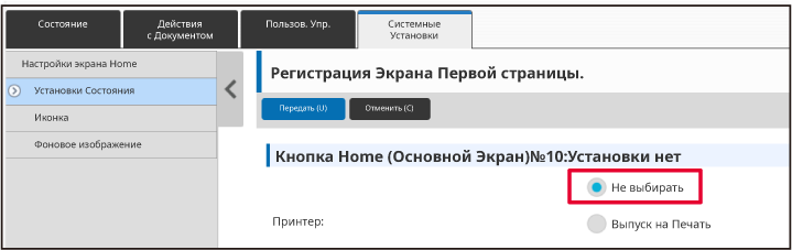 При щелчке по кнопке [Передать] экран [Регистрация Экрана Первой страницы.] закроется.По завершении настройки параметров щелкните по кнопке [Передать].