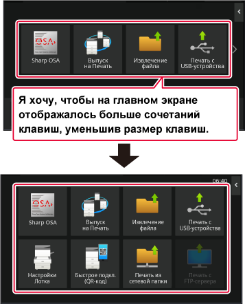 Также, для упрощения эксплуатации аппарата, можно изменять порядок отображения кнопок