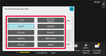 Для этих параметров может потребоваться ввод пароля пользователя. Если не выполнялась аутентификация пользователя, необходимо ввести пароль администратора.Выберите из списка язык, на который нужно сменить.