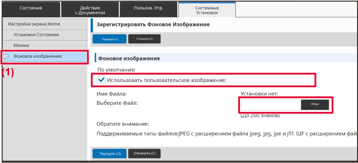 Щелкните по кнопке [Обзор] и выберите изображение, которое нужно задействовать.По завершении настройки параметров щелкните по кнопке [Передать].