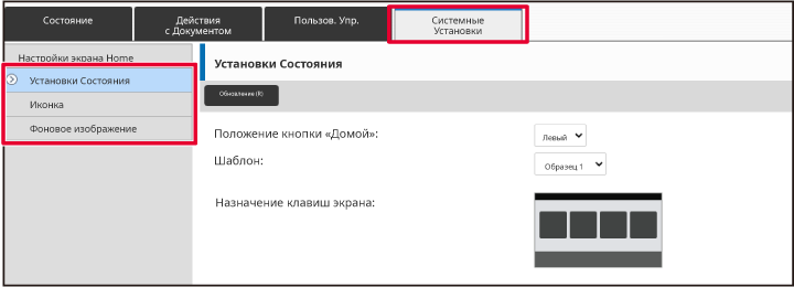 Для некоторых параметров после щелчка по пункту [Настройки экрана Home] может потребоваться ввод пароля пользователя.Выберите значение [Слева] или [Справа].