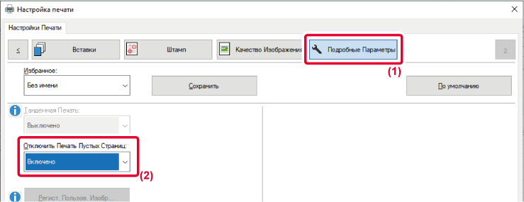 - В поле [Отключить печать пустых страниц] выберите значение [Включено].