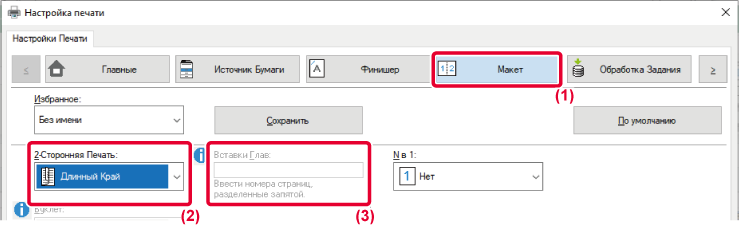 ДВУСТОРОННЯЯ ПЕЧАТЬ С ПЕЧАТЬЮ ОПРЕДЕЛЕННЫХ СТРАНИЦ НА ЛИЦЕВОЙ СТОРОНЕ (ВСТАВКА ГЛАВ)