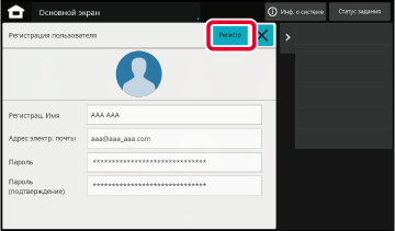Введите информацию о пользователе и коснитесь кнопки [Регистр].