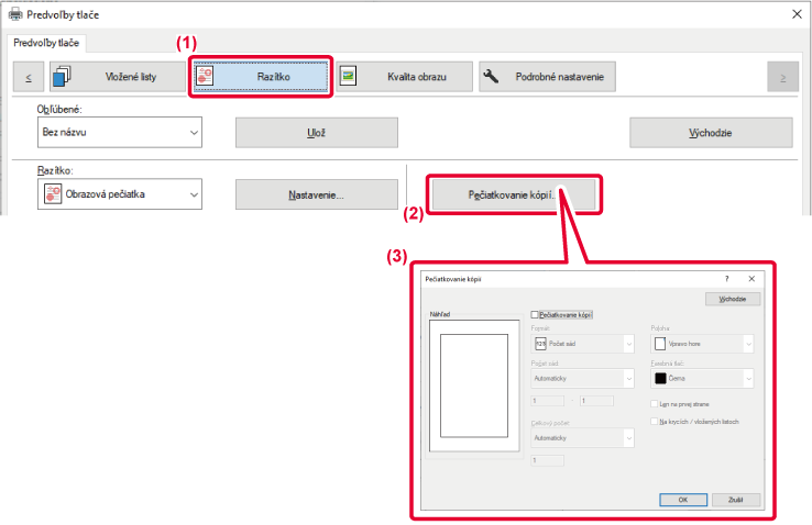 - Kliknite na tlačidlo [Pečiatkovanie kópií].