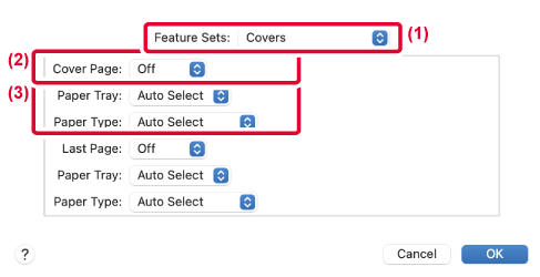 - Vyberte nastavenia tlače pre možnosť "Cover Page".