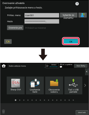 Pri spustení zariadenia sa zobrazí prihlasovacia obrazovka.