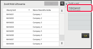 Po zobrazení okna na zadanie kódu účtovania ťuknite na tlačidlo [Vyberte zo zoznamu] vedľa hlavného kódu.