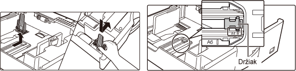 strane) a potiahnite ju nahor. Ak zariadenie veľkosť papiera nerozpoznáva, hoci je v zásobníkoch 2 až 4 správne vložený papier veľkosti 8-1/2" x 14", skontrolujte, či je držiak v zásobníku v polohe 8-1/2" x 14".ZÁSOBNÍK 1 – 4 ![]() |