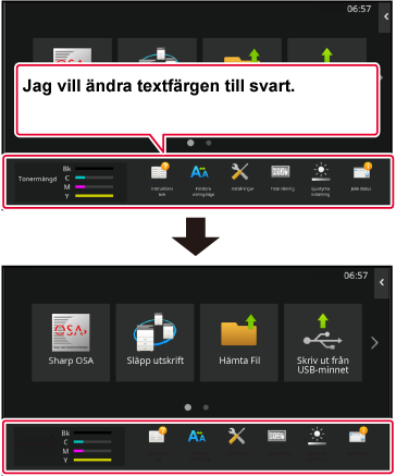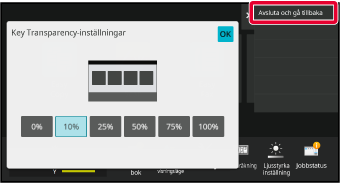 Inställningarna lagras i maskinen och aktiveras.Du kan ändra genomskinligheten på snabbknapparna.