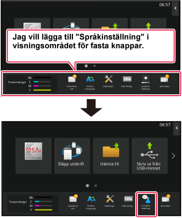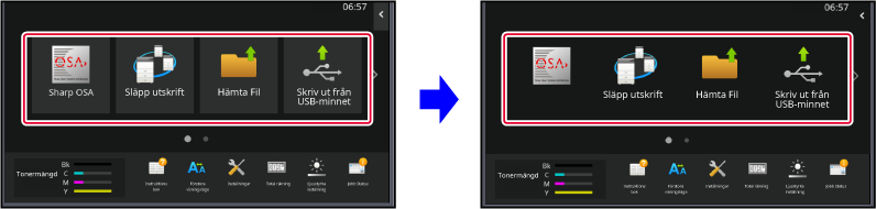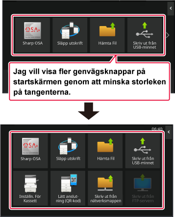 Inställningarna lagras i maskinen och aktiveras.Det här avsnittet beskriver hur du flyttar en snabbknapp på startskärmen.