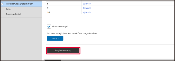 Inställningarna lagras i maskinen och aktiveras.Du kan ändra de fast inställda knapparna. De fast inställda knapparna ändras på webbsidan.