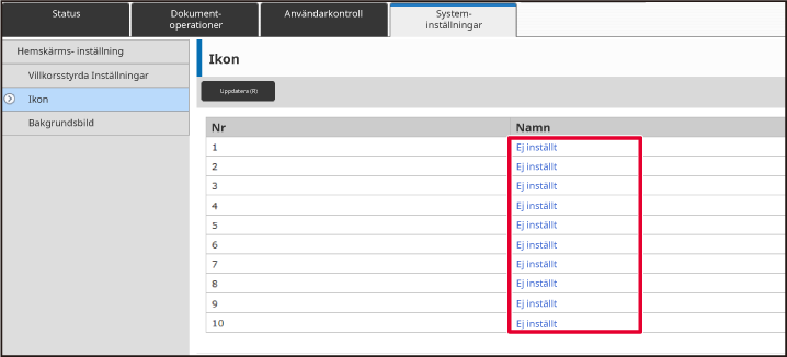 Endast namnet kan ändras via pekpanelen. Du kan ändra ikonbilden via webbsidan.