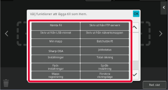 Inställningarna lagras i maskinen och aktiveras.Du kan ändra läget för knappen [Hemskärm].
