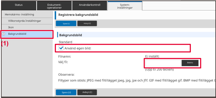 Klicka på [Bläddra] och välj bilden som ska skickas.Klicka på knappen [Spara] när du har konfigurerat inställningarna.