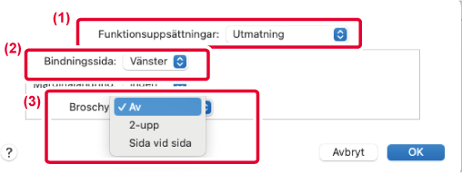 - I macOS 12 och tidigare väljer du [Skrivarfunktioner] och sedan [Utdata].