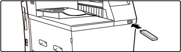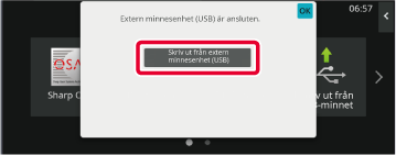 När du trycker på [Välj fil från USB-minne för utskrift] ansluter du USB-minnesenheten till maskinen.