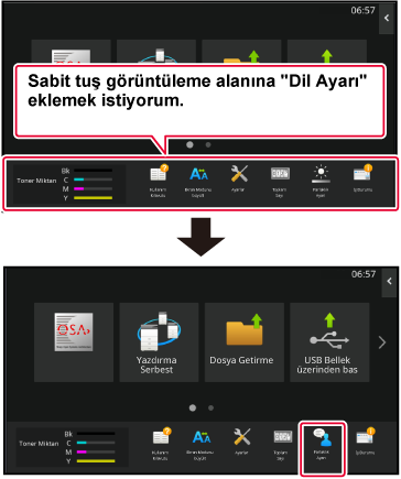 Ayarlar makineye kaydedilir ve uygulanır.Bu bölümde ana ekrandaki bir kısayol tuşunu taşıma işlemi açıklanmaktadır.
