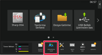 USB cihazı makineye bağlandığında, açılır pencere belirecektir. [OK] tuşuna dokunun.Ana ekranda [Ayarlar] tuşuna dokunun.
