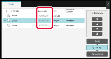 İş listesi ekranını işlem durumuna göre görüntülemeye geçirmek için, [Beklet], [İş