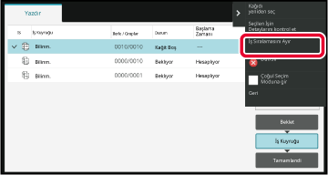 Öncelikli olarak işlenecek işe dokunun ve işlem panelindeki [İş Sıralamasını Ayır] tuşuna dokunun.