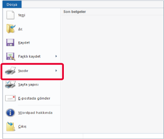 WordPad'in [Dosya] menüsünden [Yazdır]'ı seçin.