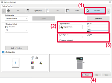 KULLANICI KİMLİK DOĞRULAMA İŞLEVİ DEVREDEYKEN YAZDIRMA
