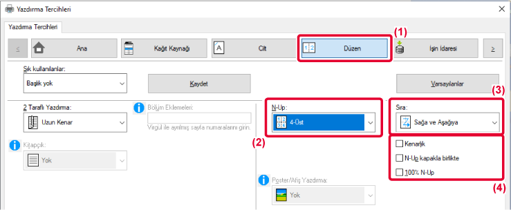 kağıt tasarrufu yapmak istediğiniz zaman uygundur. Bu işlev, 2 taraflı yazdırma ile