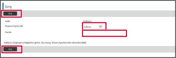 Kullanıcı doğrulama için gereken parola ve diğer bilgiler için, makine yöneticisi