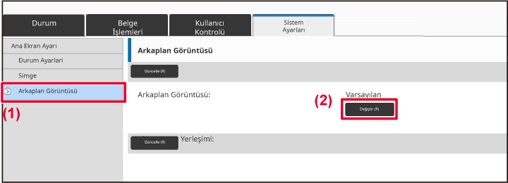 ).Ayar menüsünde [Arkaplan Görüntüsü] öğesine tıklayın ve arka plan görüntüsünü ayarlayın.