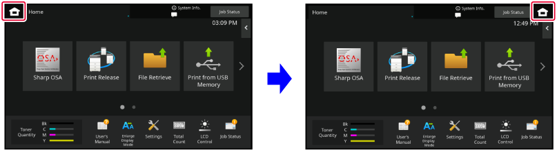 The settings are saved in the machine and applied.You can change the position of the [Home Screen] key.