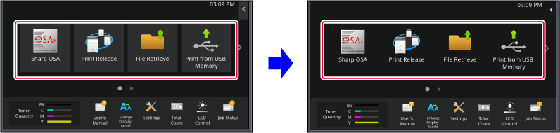 The settings are saved in the machine and applied.This section explains how to move a shortcut key in the home screen.