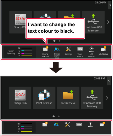You can change the color of the text in shortcut keys, fixed keys, and the clock on