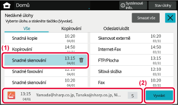 Po klepnutí na toto tlačítko se zobrazí obsah posledních úloh