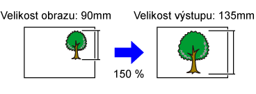 Měřítko zvětšení nebo zmenšení je zvoleno automaticky podle velikosti originálu a vybrané velikosti papíru.