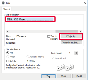 Vyberte ovladač tiskárny pro daný přístroj a klikněte na tlačítko [Předvolby].