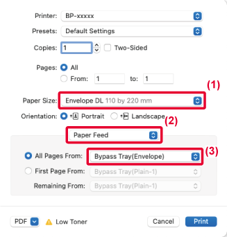 - V nabídce „All Pages From“ vyberte [Bypass Tray (Envelope)] nebo [Tray 1].