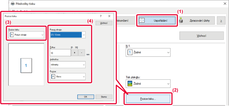 TISK S NASTAVENÍM POSUNU OKRAJE (OKRAJ)