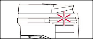 • Od začátku příjmu faxu až do skončení jeho tisku bude blikat bílá informační kontrolka. Když je do horního zásobníku dodán výstupní dokument, kontrolka bude blikat, dokud není tisk dokončen a výstupní dokument není odebrán ze zásobníku.