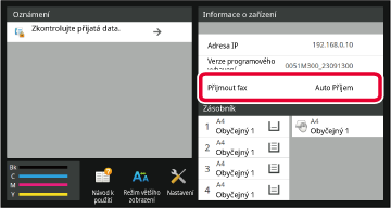 • V systémové oblasti v horní části obrazovky můžete zkontrolovat aktuální stav režimu přijetí faxu.