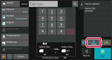 • Když probíhá příjem faxu, je možné rezervovat odeslání faxu provedením přenosu v režimu odeslání z paměti.